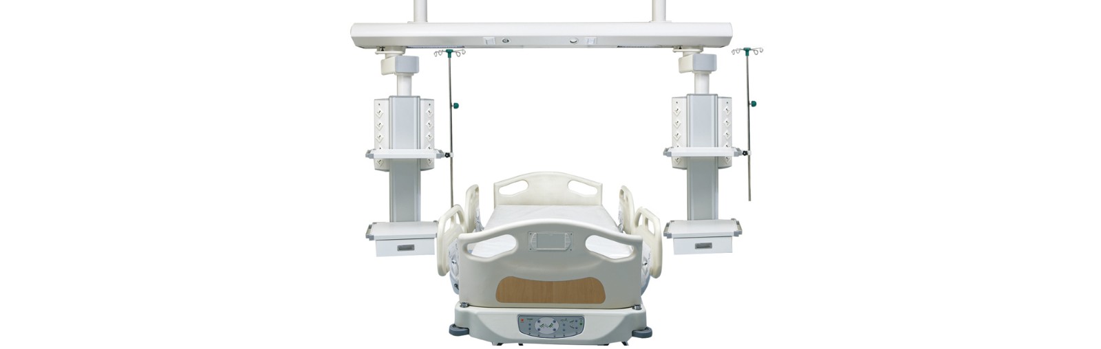 La UCI del puente de la serie C de separación seca-húmeda lleva el gas y la electricidad al pedestal o al soporte de funciones, uno o dos lados con el brazo, crean más espacio de rescate. Altura de la viga principal de 1950 mm desde el piso, fácil de pasar para la persona de atención médica, más humanización y belleza.